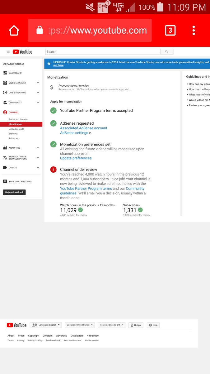 I hate to be rude. However, I've reached my goal of 1,000 subscribers and 4,000 hours of watch time a long time ago. @TeamYouTube when will I get monetized?