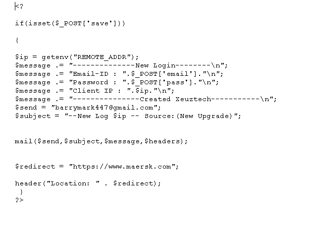Phishing page targeting Maersk at hxxp://manpoliaco.com/oejrjldnfn/