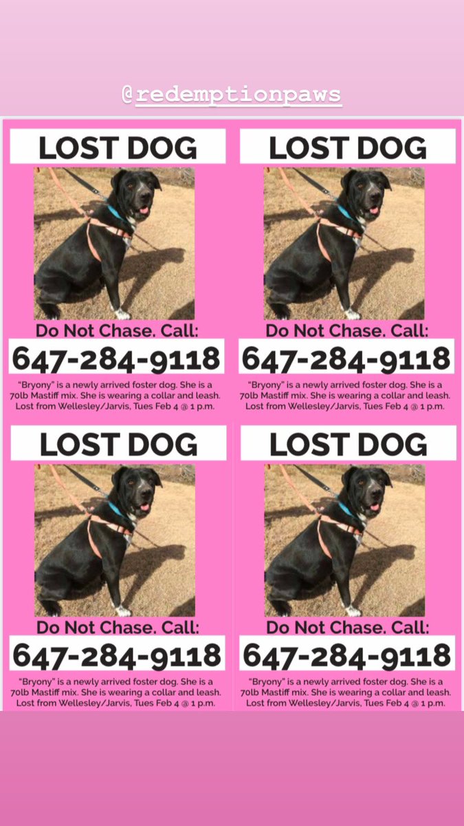 Byrony was staying at the vet clinic when they escaped their leash. Last seen at Jarvis and Wellesley. Please contact us if you see her!pic.twitter.com/R3v8hYtcgy