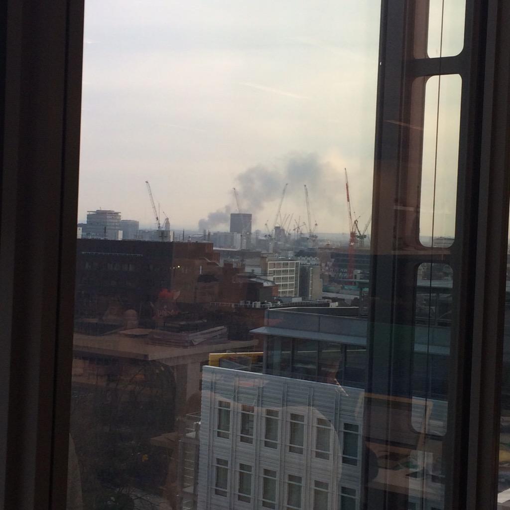Can see the flames and smoke from @battersea_arts from Tottenham Court Road :(pic.twitter.com/R7nEGtAkR8