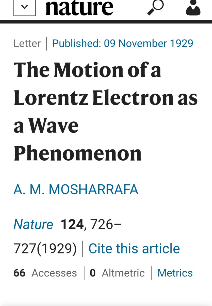 رحمة الله عليك دكتور مصطفى مشرفة هذا بحثه في نيتشر عندما كان من أفضل فيزيائي العالم وقتها