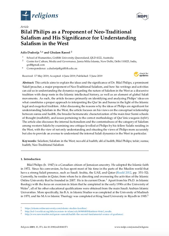 PAPER: Bilal Philips as a Proponent of Neo-Traditional Salafism and His Significance for Understanding Salafism in the West https://www.mdpi.com/2077-1444/10/6/371 …pic.twitter.com/v0CO3NtSHH