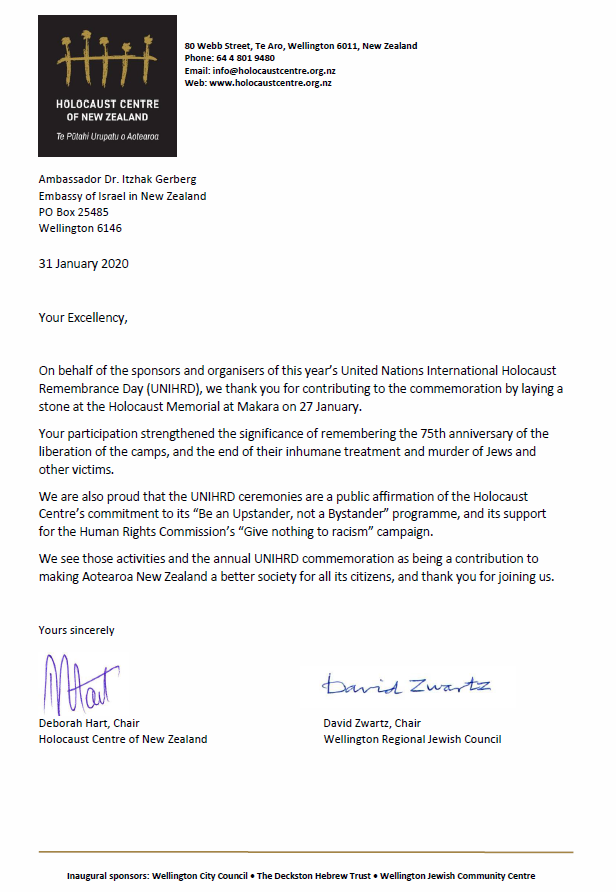 @HolocaustNZ, David Swartz - Chair of the Wellington Regional Jewish Council & all sponsors & organisers of this year's United Nations International Holocaust Remembrance Day ceremonies. It was an honour to participate.#HolocaustMemorialDaypic.twitter.com/hTG3SkRxwW