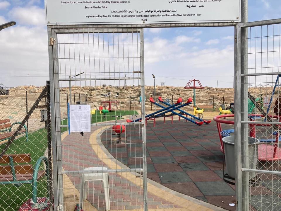 Israeli occupation and apartheid army issued a demolition order against the only children's playground in Susya village in south Hebron hills, it is the only garden where children play.