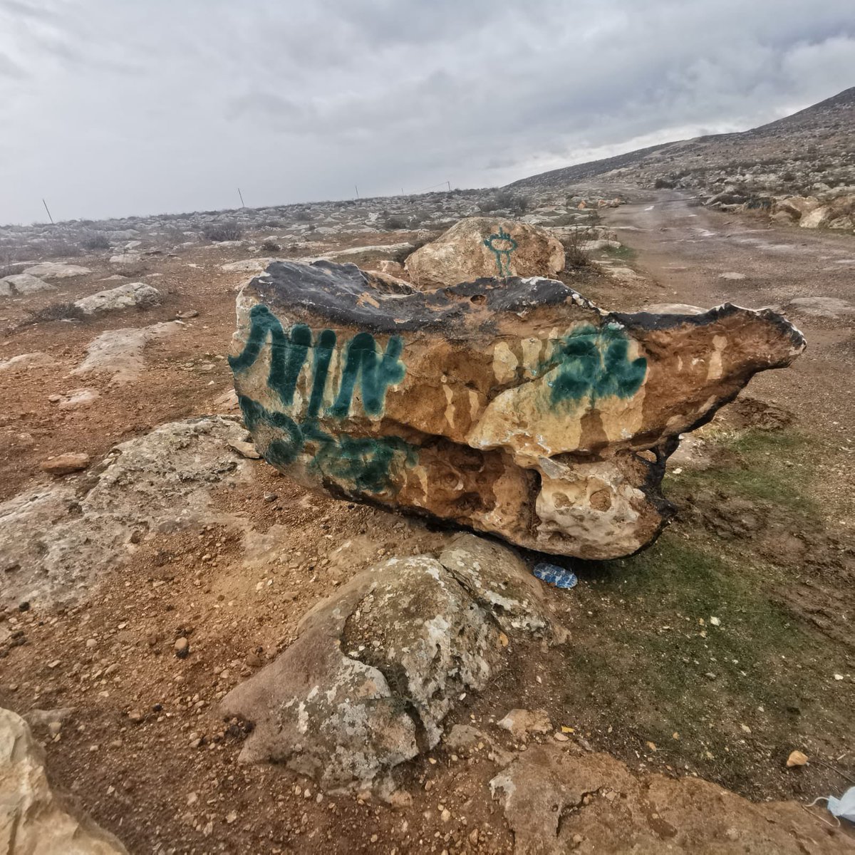 Yesterday, Israeli settlers blocked the road to south mount Hebron with big rocks,written on them : Death To Arabs, all other roads are destroyed by the army. Israeli Settlers cooperate with the army to make the life of Palestinians impossible to force them to leave their homespic.twitter.com/UtqslbJgl4