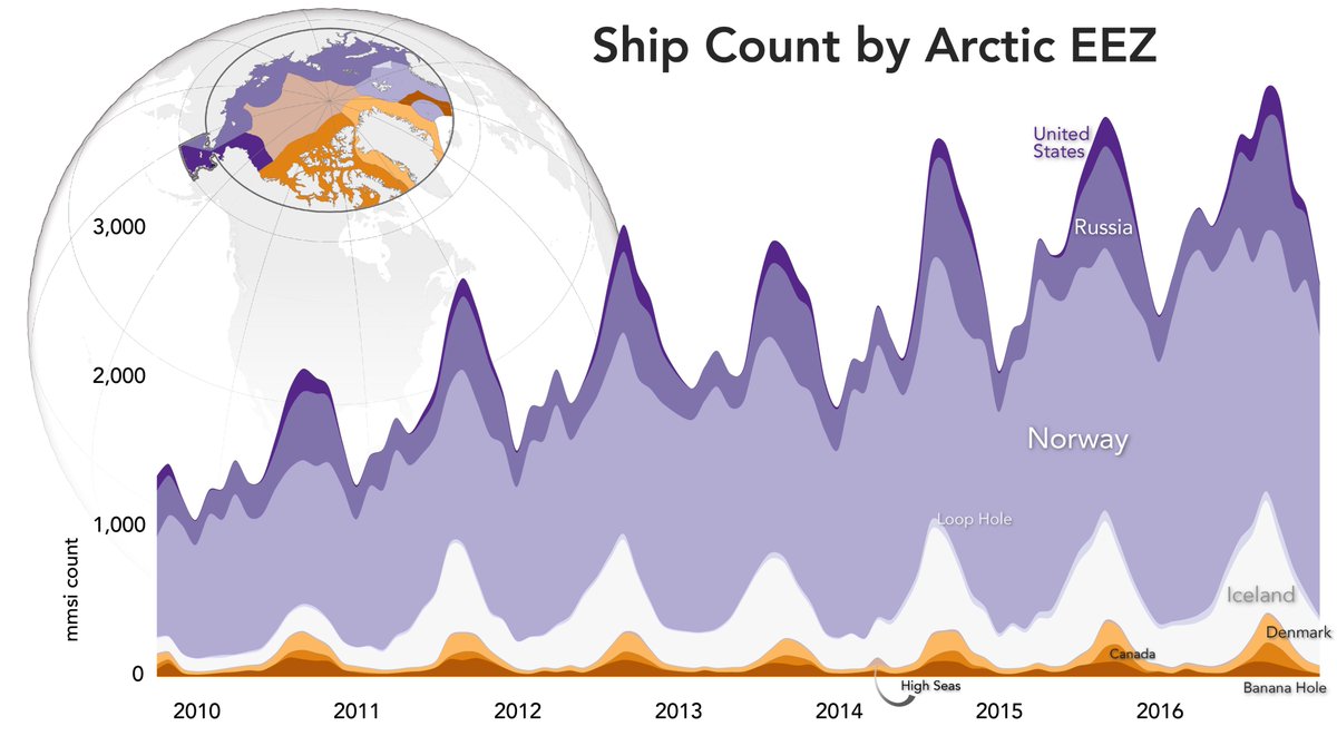 Who is using the Arctic Seas and how is that changing over time? Come to our disruptive technology session tomorrow 15:00 Margarinfabrikken 3 to hear how we attempt to answer this question.