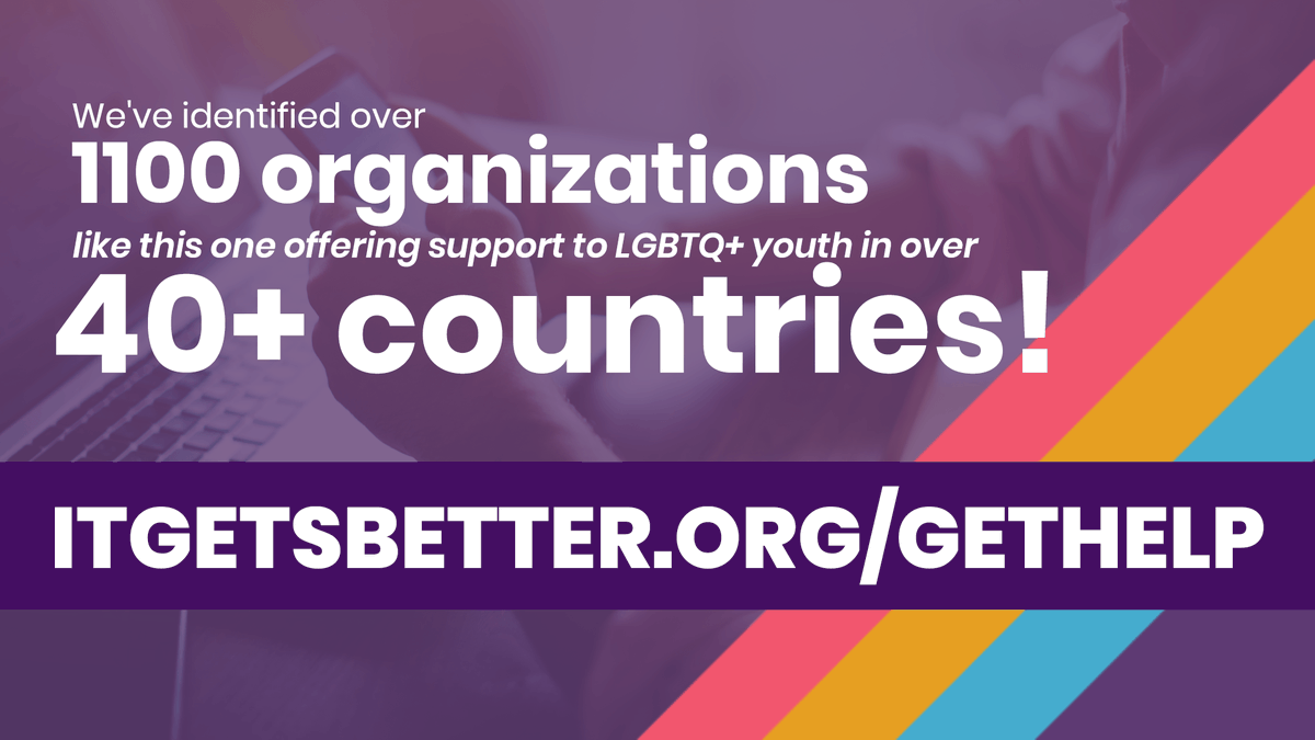 Did you know we have a Get Help page with over 1,000 organizations in 30+ countries in 8 different categories, making it one of the most comprehensive databases for LGBTQ+ youth in the world?! Check it out: http://ItGetsBetter.org/gethelp pic.twitter.com/V4GRGkX1Gc