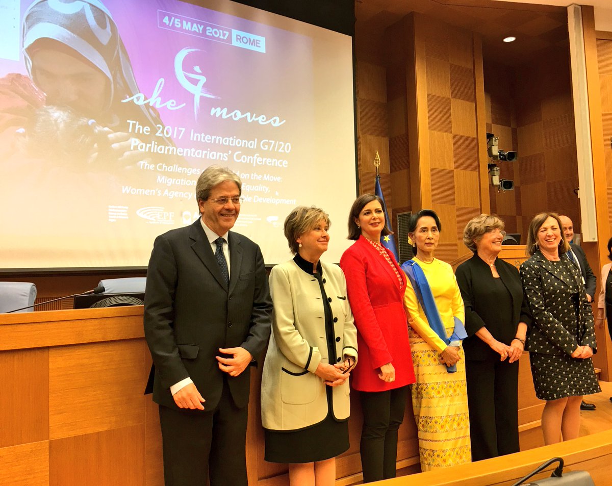 @PaoloGentiloni and@OfficialSuuKyi at#G7 Parliamentary Conference on migration and#gender equality#Aidospic.twitter.com/skpkgytWKy