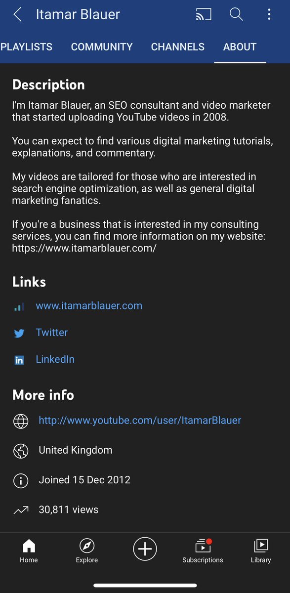 The ‘ABOUT’ tab on #YouTube looks sleek