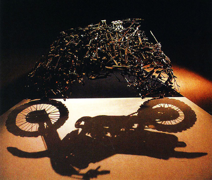 A sculpture by Shigeo Fukuda made up of 848 knives, spoons and forks. The light has to be at just the right angle to create this shadow.pic.twitter.com/HMWBQuHDIz