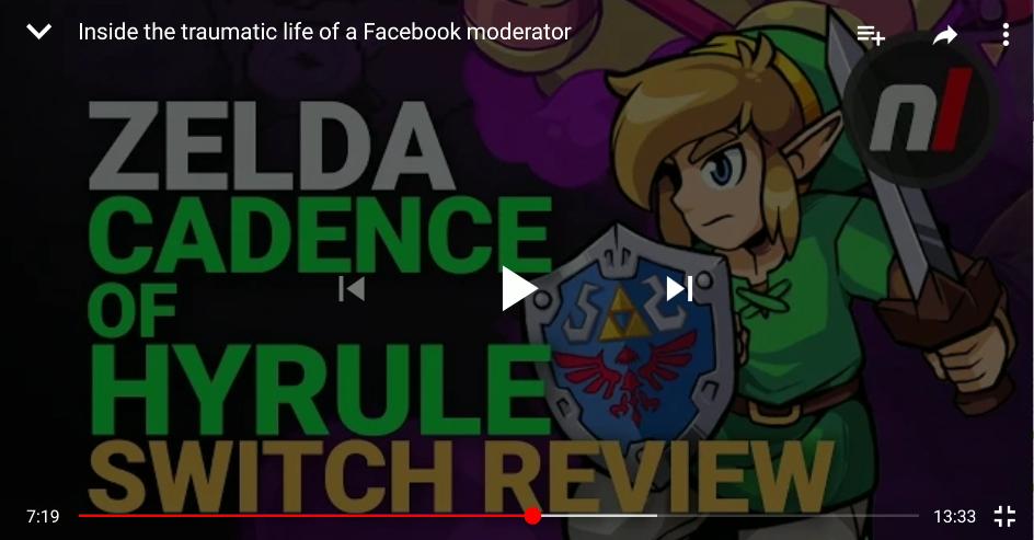 For some reason the thumbnails on @YouTube videos are wrong after I pause a video & lock my phone. When I unlock it, it shows a random thumbnail for a different video: Title: Inside the traumatic life of a Facebook moderator Thumbnail: Zelda Cadence of Hyrule review @TeamYouTubepic.twitter.com/wEJW3LDYHW
