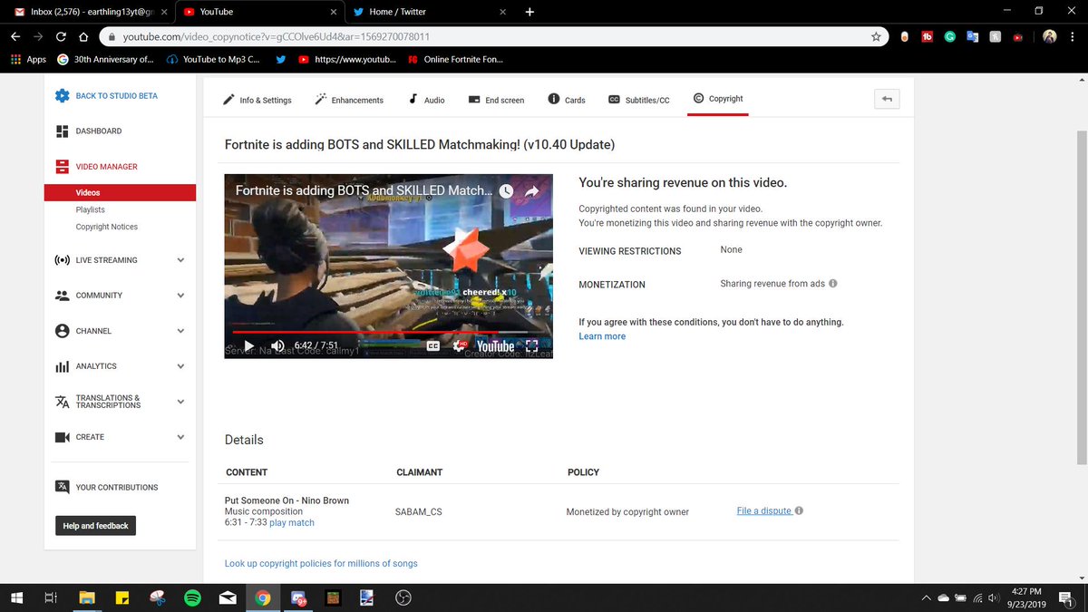 The song being claimed is not even in my video. The song in my video is "Days like these" by Lakey Inspired, and is copyright free. Please remove this claim.pic.twitter.com/ozZMGOOpjS