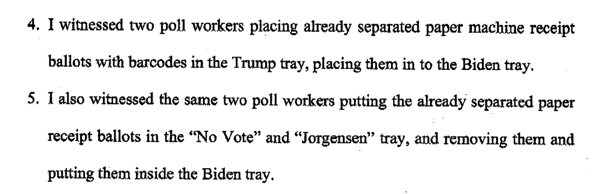 Third Georgia recount monitor, Carlos Silva, a registered Democrat, says he saw Trump ballots placed in Biden piles and counted as Biden votes "a few times." Source: https://www.courtlistener.com/docket/18632787/6/9/wood-v-raffensperger/ …pic.twitter.com/2BrICDBAY7