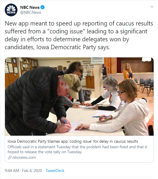 When will the Democrats start blaming RUSSIA, RUSSIA, RUSSIA, instead of their own incompetence for the voting disaster that just happened in the Great State of Iowa?