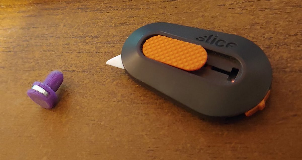 One of my favorite things lately - these little slice ceramic cutters. And surprisingly, they have a magnet in there! So I printed out a little pegboard magnet nub and I can just hang the tool magnetically. I'm curious what else I can get away with - with magnet-based holders.pic.twitter.com/0el4Lg3hCd
