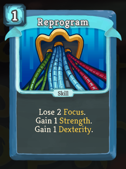 One card I REALLY want to experiment with is the new Reprogram. Losing focus to gain strength and dexterity opens up a completely new style of play - trading your passives for raw power!pic.twitter.com/pq2mMYmW9n