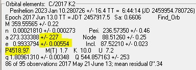 C/2017 K2 PANSTARRS positions from last night show how uncertain P still is, gen solution suggests anywhere between 2,000 and 70,000 yearspic.twitter.com/6HLXnLrVDO