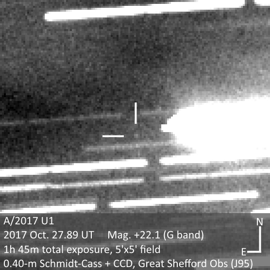 Interstellar interloper A/2017 U1 now getting v faint, last night about 300,000 times fainter than the mag +8 star to the westpic.twitter.com/onG4CYq1xU