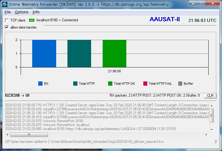 AAUSAT-2 1K2 / UWE-3 9K6 Telemetry over Japan