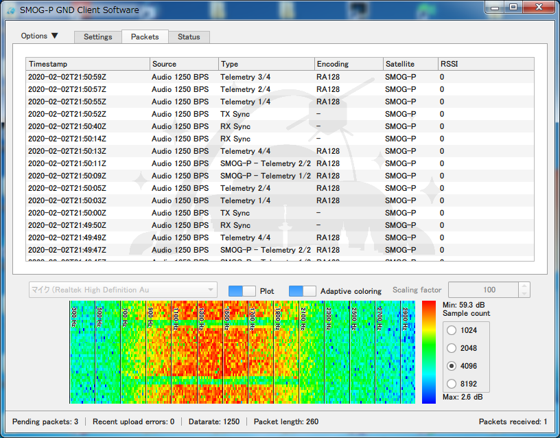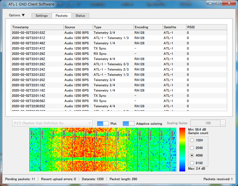 HuskySat-1 02:21 UTC 1K2 telemetry (trapon OFF) rcv FT-847 / SwampSat-2 02:22 UTC 9K6 Telemetry(decode replay IQ-Wav) over Japan