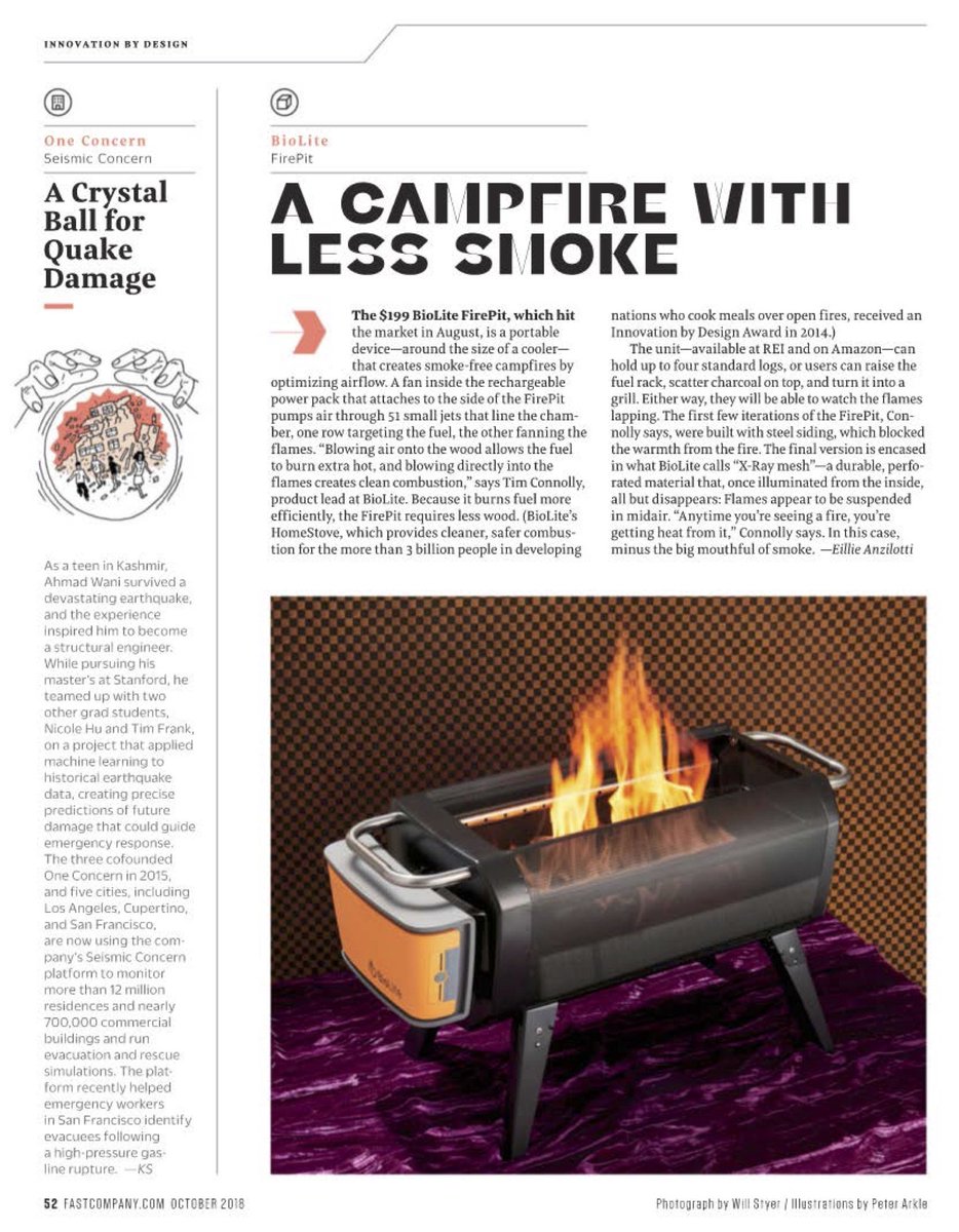 "A Campfire With Less Smoke." We're thrilled to see the @biolitestove FirePit on the pages of @FastCompany!