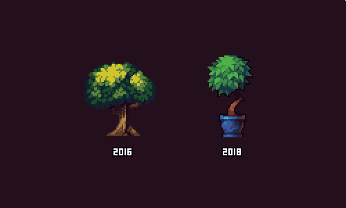 I have almost zero exp in drawing trees. I made maybe 3-4 in total lol But I like the improvement of my skills since 2016 c: Keep pixelling and never give up!
