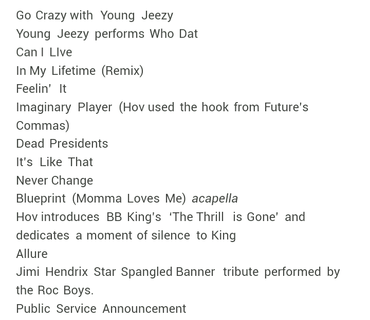 The setlist #TIDALXJAYZ Saturday showpic.twitter.com/hH91FW0bIS