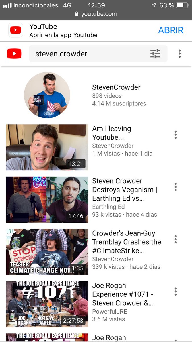 A current screenshot showing @TeamYouTube actively blacklisting us from video results for "Steven Crowder"--not a video from our channel in sight! #YouTube2020ElectionBlacklist Screenshot and show us if you're seeing the same results for search: https://www.youtube.com/results?search_query=Steven+Crowder&sp=EgIQAQ%253D%253D …pic.twitter.com/Ufwr4szTUv