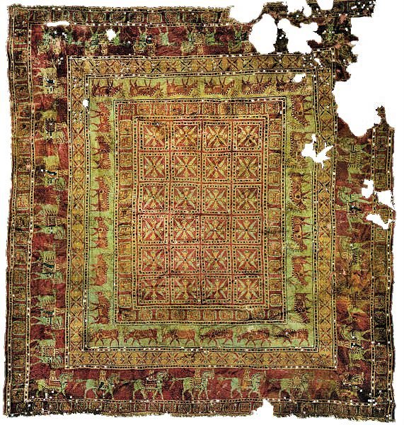 This carpet, found in the Siberian permafrost, was created in the 5th century BC by using the so-called Turkish knot https://www.hermitagemuseum.org/wps/portal/hermitage/digital-collection/25.%20Archaeological%20Artifacts/879870/!ut/p/a1/jZDLTsMwEEV_hS6yxJ44ceJ2ZxmJUlqCqgrcbJAT5WFI4sgxjcTX40qsKl6zu9KZO0eDcyxxPqiTbpTTZlDdOefJS8Z5EkYCNpmgN8Cz_SPdi4dbCGMPHD0APwyHv_Y3_zhA7E7sGpyPyrXXeqgNloSiK27LVlWmM40uVeej07Uq3YQlS5csBfyM84v2u_vUtx_oOsueBBHxF_CLvvfTRY_mskeAKKEQRksAlpI0ZslZjg9FxLycrerKVha9W_-11rlxWgUQwDzPyFtVhTFvqDR9AN8ttWZyWF6yeOzlx3YNr7Q7bTlfLD4BElMYbw!!/ …pic.twitter.com/lvxHqcpA8l
