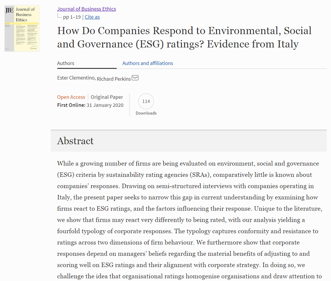 Journal of Business Ethics How Do Companies Respond to Environmental, Social and Governance (ESG) ratings? Evidence from Italy http://ow.ly/LPHZ30qeMVf pic.twitter.com/tZs0YMckjk