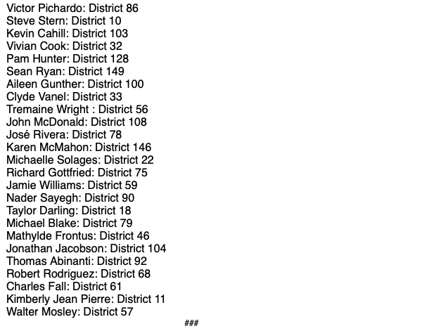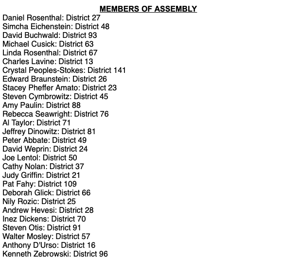 The 52 names. Not to get political but... Walter Mosley, Joe Lentol and Tremaine Wright, who just lost primaries to DSA candidates, are signed on. Felix Ortiz and Aravella Simotas, who also lost to DSA candidates, are not.pic.twitter.com/ibMkITdMeL