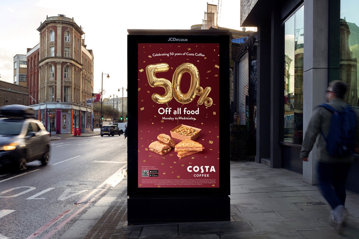 @CostaCoffee with 50% off all of their delicious food Monday to Wednesday
