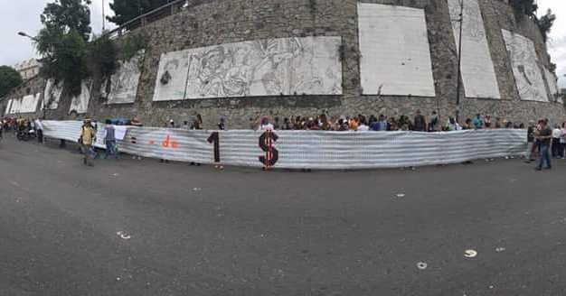 ¡INCREÍBLE! 25 metros, 3.000 billetes de 2Bs. F = 1$. Protesta inteligente que se hizo hoy en la Redoma de