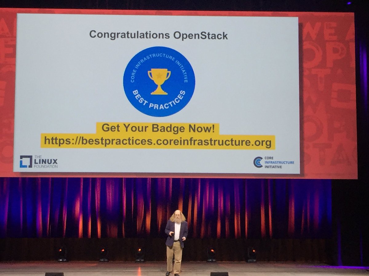 Of 40 project receiving Linux Foundation security badges @OpenStack only one that had no security issues to correct. #OpenStackSummitpic.twitter.com/cxOKE85y2M