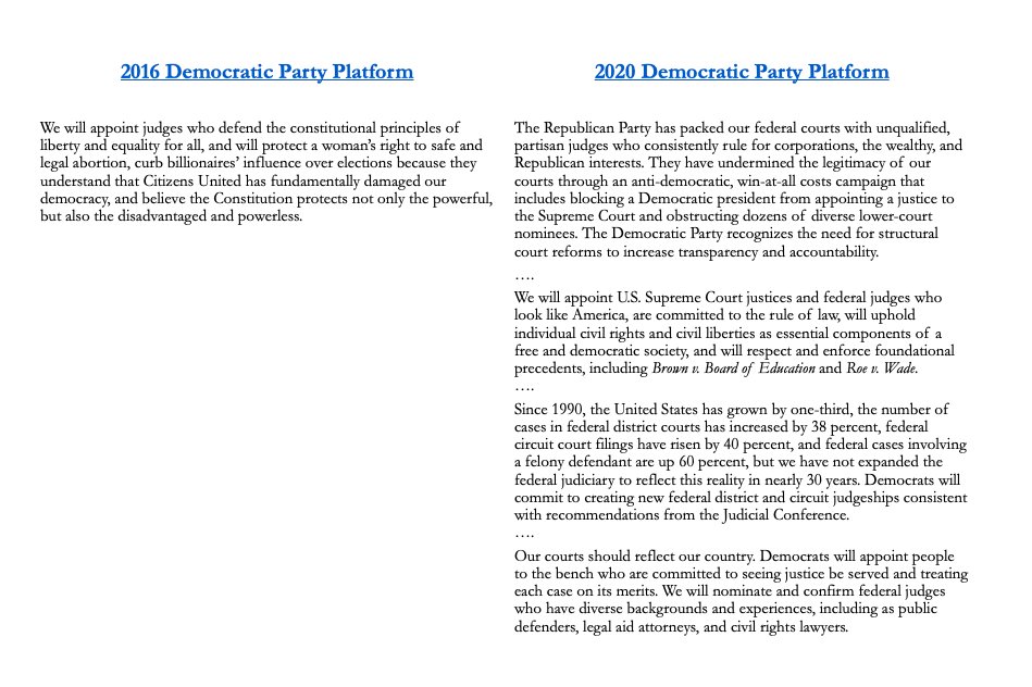 The new Democratic Party platform makes the need for Joe Biden to release his list of SCOTUS nominees all the more compelling. Will Biden continue to get a pass on this issue, too? (6/x)