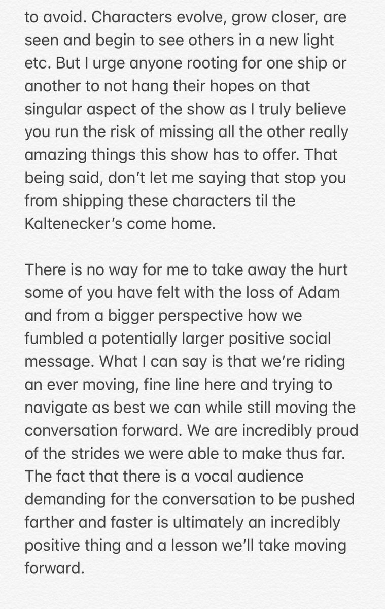 I've been watching all the drama that's been unfolding after this season, and I'm sorry that people interpreted it that way. Personally, I was absolutely ecstatic when Shiro was revealed to be gay (still am), and I'm so grateful as a queer viewer for you and the staff to push