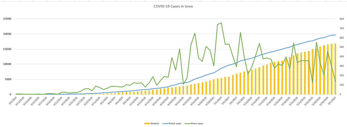 #Iowa numbers: Total 19, 688, new ~200, deaths 538 Please find ways to raise your voice against injustice and also stay safe. The anger is righteous but we are still in the middle of a pandemic. It's not an easy balance but we have to find it to stay alive.pic.twitter.com/9sw4qJQ3TE