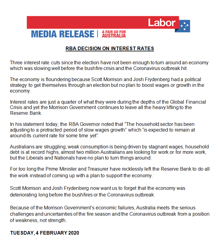 MEDIA RELEASE: Top end tax cuts to cost $10 billion in extra interest
