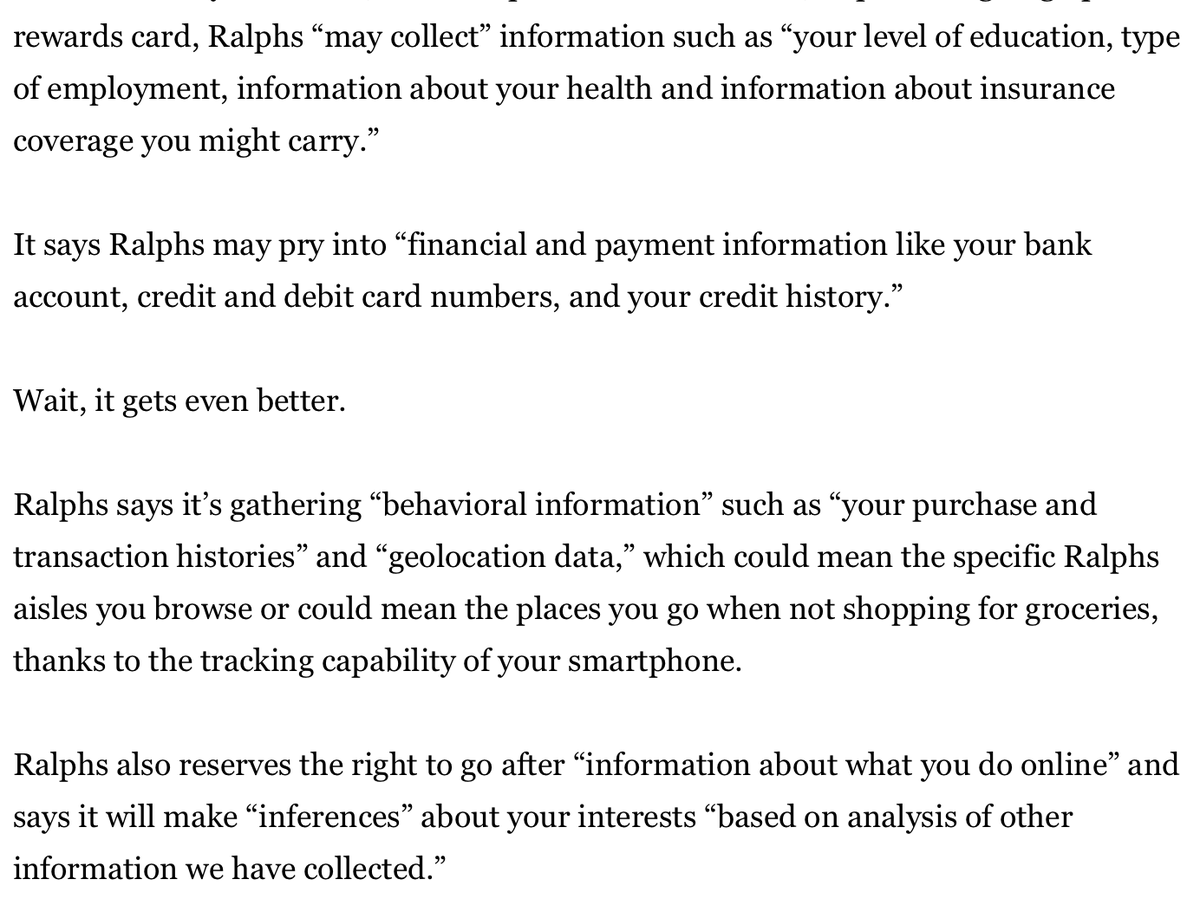 What you’re actually agreeing to when signing up for that grocery store rewards program https://www.latimes.com/business/story/2020-01-21/ralphs-privacy-disclosure …pic.twitter.com/p3vsdnW7y7