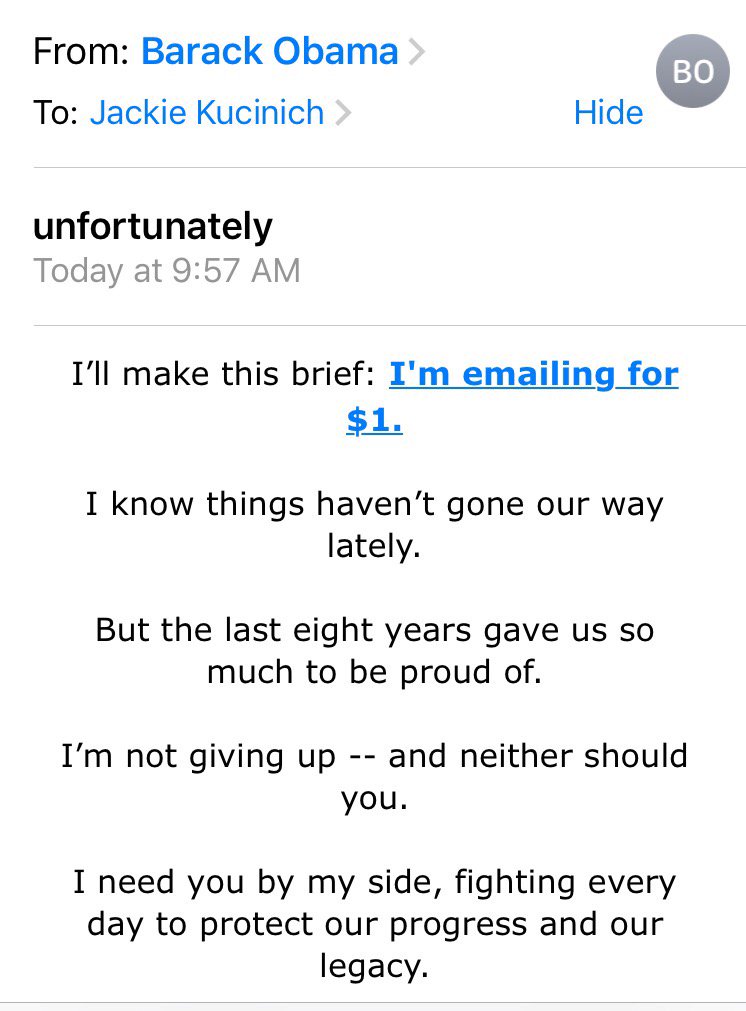 This DCCC fundraising request in Obama's name seems in poor taste today ...pic.twitter.com/dk5ihnqV9U