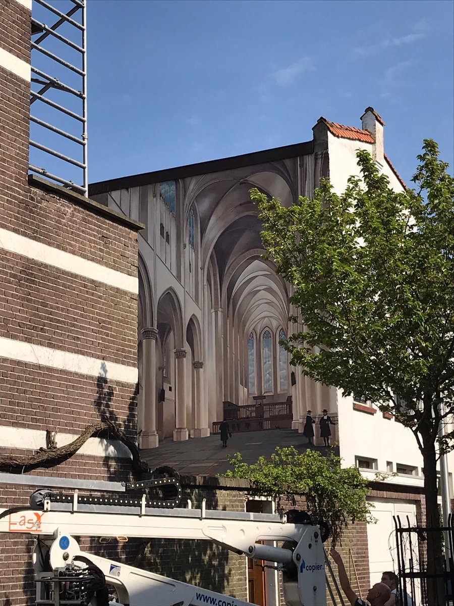Dit is de nieuwste muurschildering in Utrecht. Het is de Catharijnekerk op een huis in de Pieter Saenredamstraat. Gemaakt door @destrakkehand, op initiatief van buurtbewoners. Mooi?pic.twitter.com/XFdSRenxVn