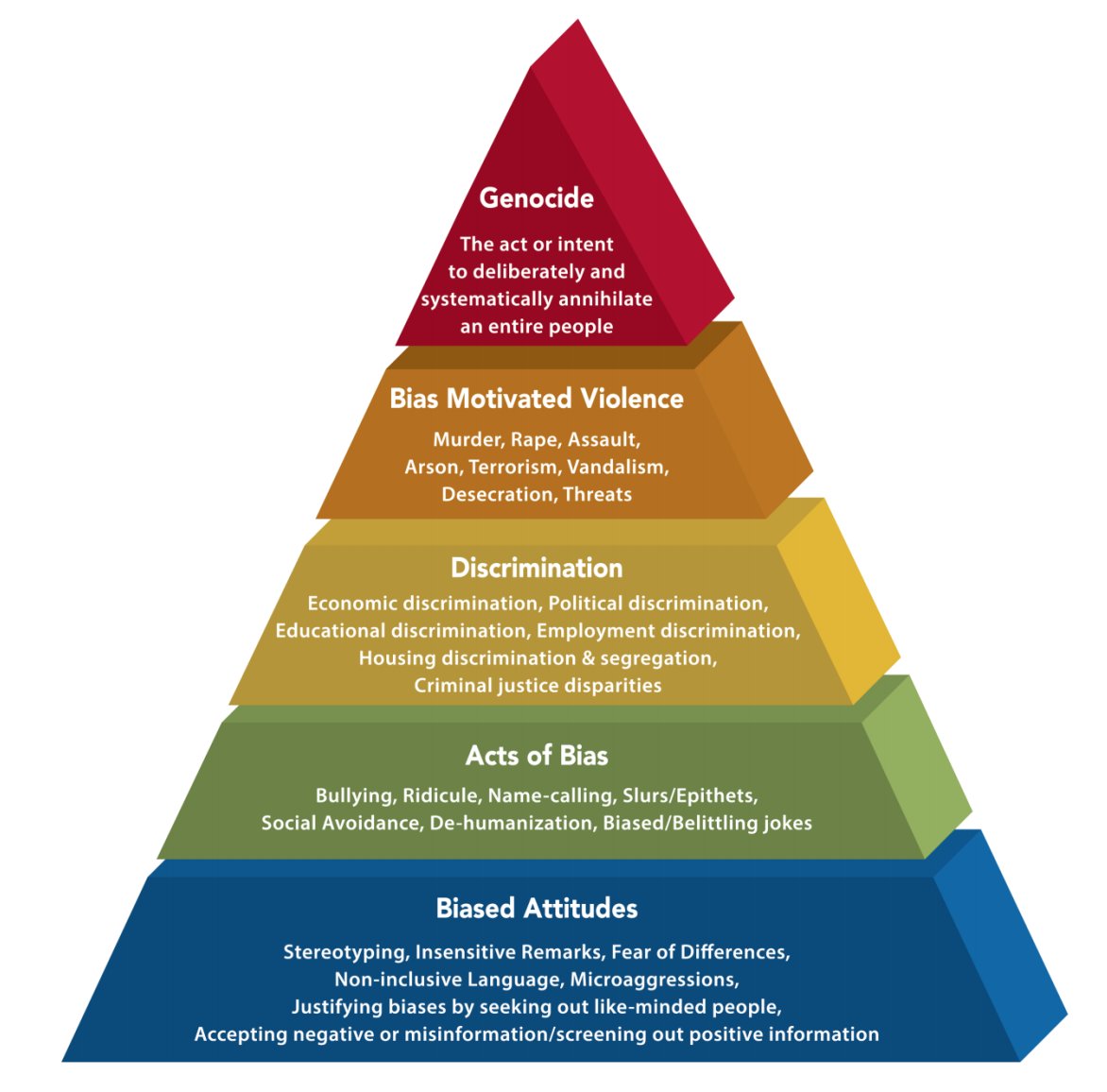 #Hate often starts from biased attitudes and builds from there. Eventually, it could lead to#discrimination or bias-motivated violence. Our Pyramid of Hate illustrates this escalation: http://j.mp/2UO8axe pic.twitter.com/QFE6FK5zEe