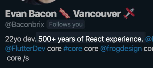 He jokes, but Evan Bacon actually is one of those people who's worked so hard from a young age that his "years of experience" relative to others might exceed his age at some point.pic.twitter.com/ayrt4NYH5u