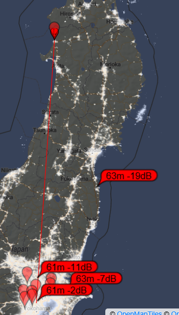 1時間前に6m FT8で入感していた秋田局。ウチのベランダアンテナが最も遠く、最も強力に受信していた。 こういう時に限ってシャックにいない _| ̄|○pic.twitter.com/OUekPSanW7