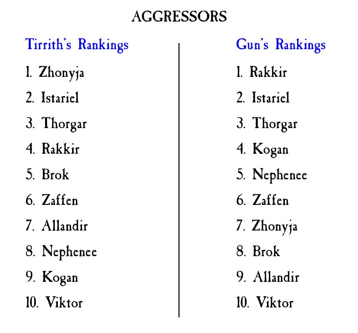 @Tirrith and @JMTAndrewG had some fun on stream last night putting together their Aggressor power rankings. A subjective exercise that caused quite the stir, great to see so many differing opinions from players. :)pic.twitter.com/VLIliRkM21
