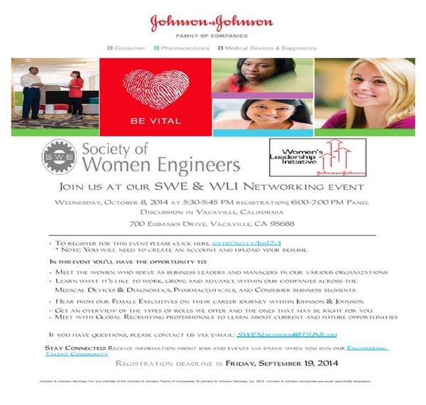 Register today: Join #JNJ @SWETalk & #WLI for a #networking event in #Vacaville #California #Careerspic.twitter.com/XoXkUBqSSt
