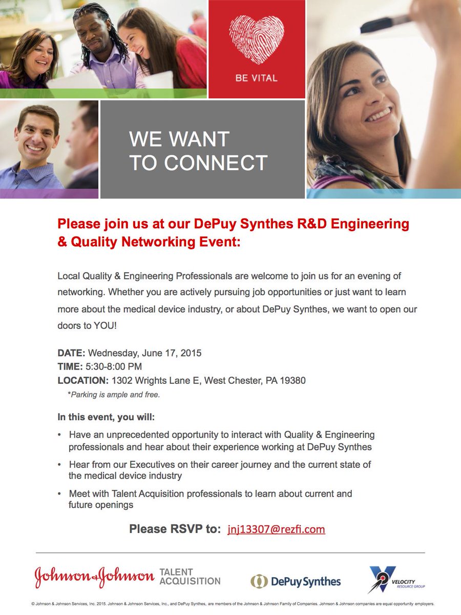 Pursuing a career in #Quality or #Engineering? Join us Wed. to talk w/ professionals about their exp at #DePuySynthespic.twitter.com/bMVl60UShg