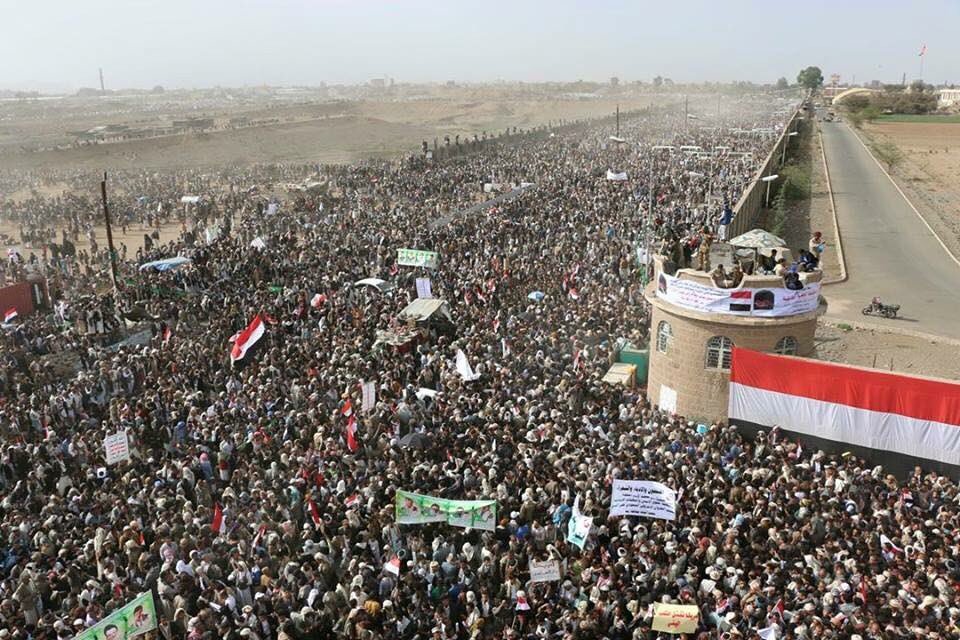#Sanaa Chanting#Yemen national anthem, protesting against#Saudi aggression after 1 year of war pic.twitter.com/01GFJnMlra8:38 AM - 26 Mar 2016 · Details32 retweets 15 likes -