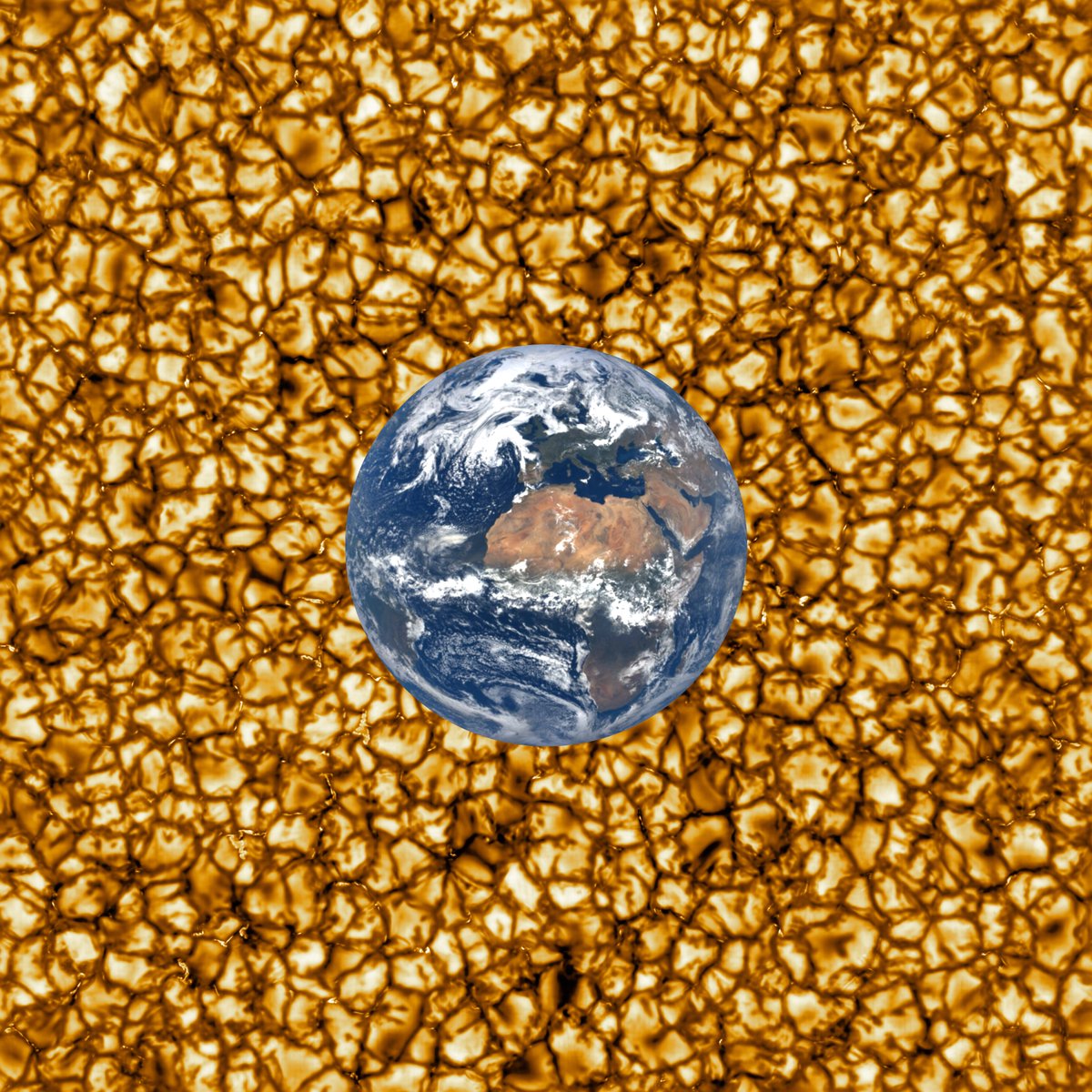 Also, the full-size version of the NSO image spans an area 22,600 miles (36,500 km); this is Earth to scale against the photosphere features seen. (