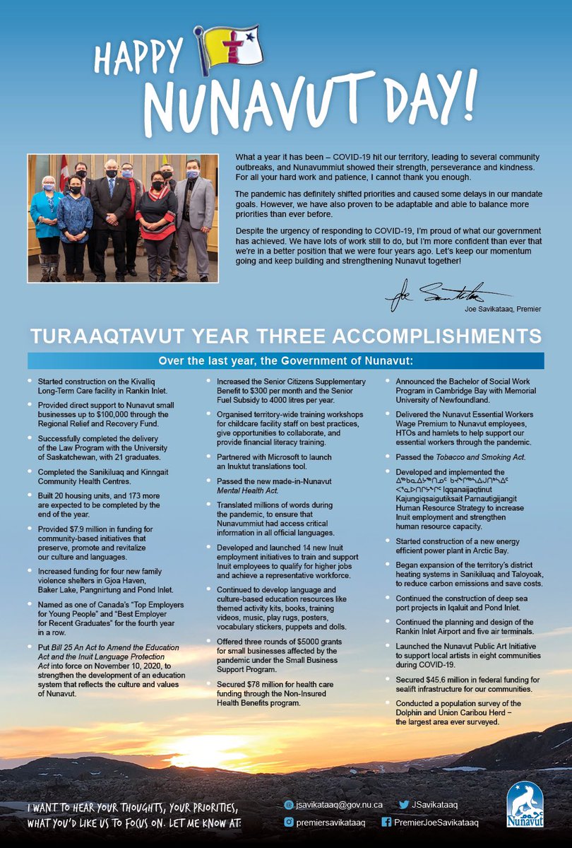To all Nunavummiut and Nunavut residents, Happy Nunavut Day! The